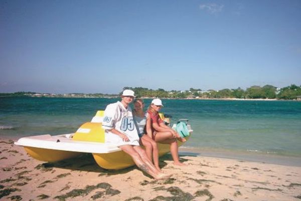 Diesmal hatten wir alle eine ganz kurze Nacht, wir konnten nicht schlafen so juckten die Beine. Andre konnte es nicht mehr aushalten, deshalb fuhr er mit Ronny zum Arzt. Die deutsche Ärztin hatte Urlaub aber es war Gott sei Dank noch ein Canadischer Arzt dort. Er guckte sich Andre´s Beine an und meinte sofort ,,Sandflys!!!´´. Es kommen täglich Touristen zu ihm und denken sie hätten die Windpocken so schlimm sieht das aus. Andre bekam sofort eine Spritze in den Po gegen den Juckreiz. Er gab ihm noch einige Allergietabletten mit, die wir aber schluckten da er ja schon eine Spritze bekam. Mit den Tabletten ging es uns schon wieder besser. Der Arzt sagte uns man sollte entweder nach 16 uhr nicht mehr zum Strand gehen oder ein Off Spray vorher auf die Beine auftragen. Danach konnten wir wieder beruhigt zum Strand gehen und fuhren wieder mit dem Tretboot hinaus (aber diesmal nicht so weit). Yvonne und ich holten uns einen sehr schönen Sonnenbrand auf dem Kopf. Durch die Rastas kam unsere weiße Kopfhaut zur Sicht, trotz Mütze bekamen wir trotzdem einen Sonnenbrand. Um 16 uhr flitzten wir wieder ins Hotel da uns die Sandflöhe wieder angreifen wollten. Wir machten uns einen schönen Abend an der Bar.