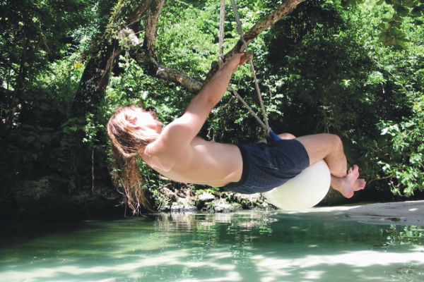 Gleich nach dem Frühstück sind wir zu den YS Falls aufgebrochen, haben dort Tarzan und Jane gespielt wir konnten uns mit einem Seil in das Wasser platschen lassen, war richtig lustig. Das Wasser war etwas kälter als im Meer, aber sehr erfrischend. anschliessend kam ein Unwetter, Gott sei Dank waren wir schon fast fertig als es losging. Unten im Restaurant haben wir auf Anke gewartet. Dort haben wir Hamburger gegessen, na ja so toll war es nicht. Anschliessend an einem Cambio angehalten, Geld geholt.