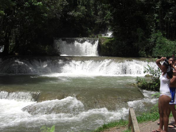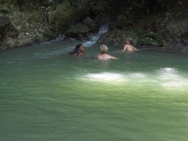 Um 8:00 Uhr wurde gefrühstückt. Danach sind wir mit den anderen mit dem Routetaxi für 50 JA in Richtung Ochi zu einem Botanischen Garten gefahren. Der Bus war total überfüllt und die Fahrweise des Drivers echt abenteuerlich. Aber daran gewöhnt man sich in Jamaica ziemlich schnell. Der Eintritt im botanischen Garten kam exorbitant hohe 1250 JA pro Person. Aber das hat sich, wie wir später feststellten auch gelohnt. Es ging mitten durch den Dschungel. Nach einer halben Stunde Fussmarsch in tropischer Feuchte sind wir an eine Quelle gekommen, in der wir baden konnten. Das Wasser war angenehm kühl und erfrischend. Nach einer Stunde im kühlen Nass machten wir uns auf den Rückweg durchs Unterholz. Da es noch recht früh war, machten wir uns auf den Weg nach Ocho Rios. Dort gab´s an jeder Ecke Souvinierläden und man wurde alle paar Meter von Leuten angehauen, die einem sämtliches verkaufen wollten. Auf dem Craft markit wurde man von Angeboten nur so erschlagen. Jedermann wollte uns seine Waren verkaufen. Wir waren daher eher damit beschäftigt, den Verkäufern klarzumachen, dass wir nichts wollten, als dass wir uns in Ruhe umschauen können. Das war etwas zuviel des Guten und wir verschwanden wieder. Langsam wurde es dämmrig und wir machten uns auf den Rückweg. Den Tag liessen wir unter dem Pavillion ausklingen. | |||